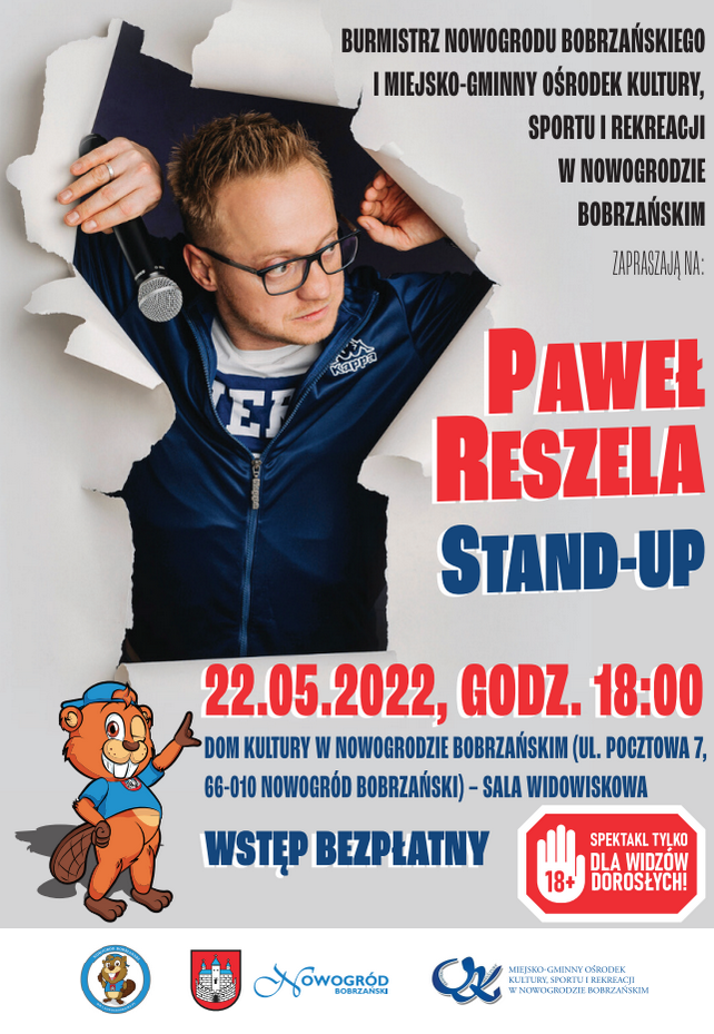 Burmistrz Nowogrodu Bobrzańskiego i Miejsko-Gminny Ośrodek Kultury Sportu i Rekreacji w Nowogrodzie Bobrzańskim serdecznie zapraszają na STAND-UP Paweł Reszela – Wydarzenie tylko dla widzów DOROSŁYCH!