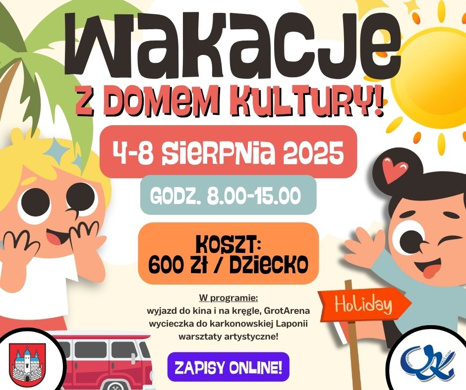 Od 4 do 8 sierpnia zapraszamy dzieci w wieku szkolnym na wakacyjne półkolonie, które pełne będą wycieczek, warsztatów i dobrej zabawy